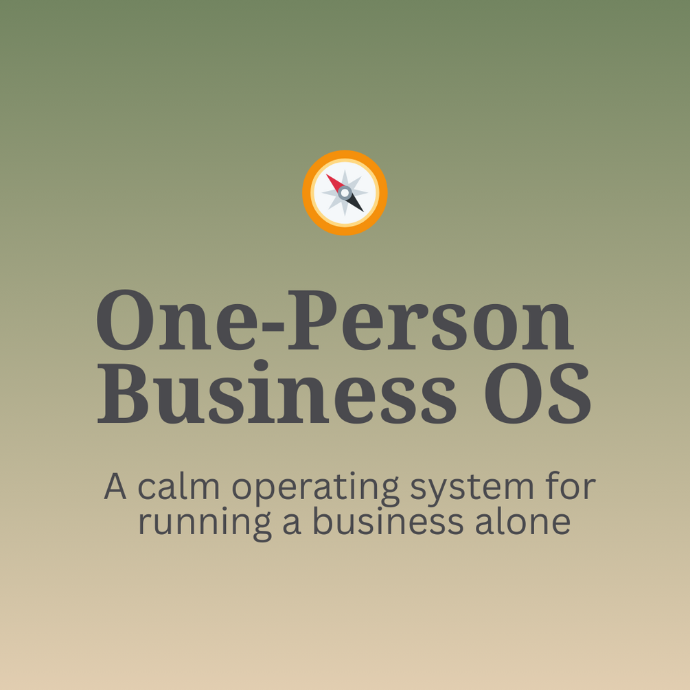 The One-Person Business OS is a reusable Notion-based system designed to help solo business owners organize work, reduce decision fatigue, and keep going without holding everything in their head.