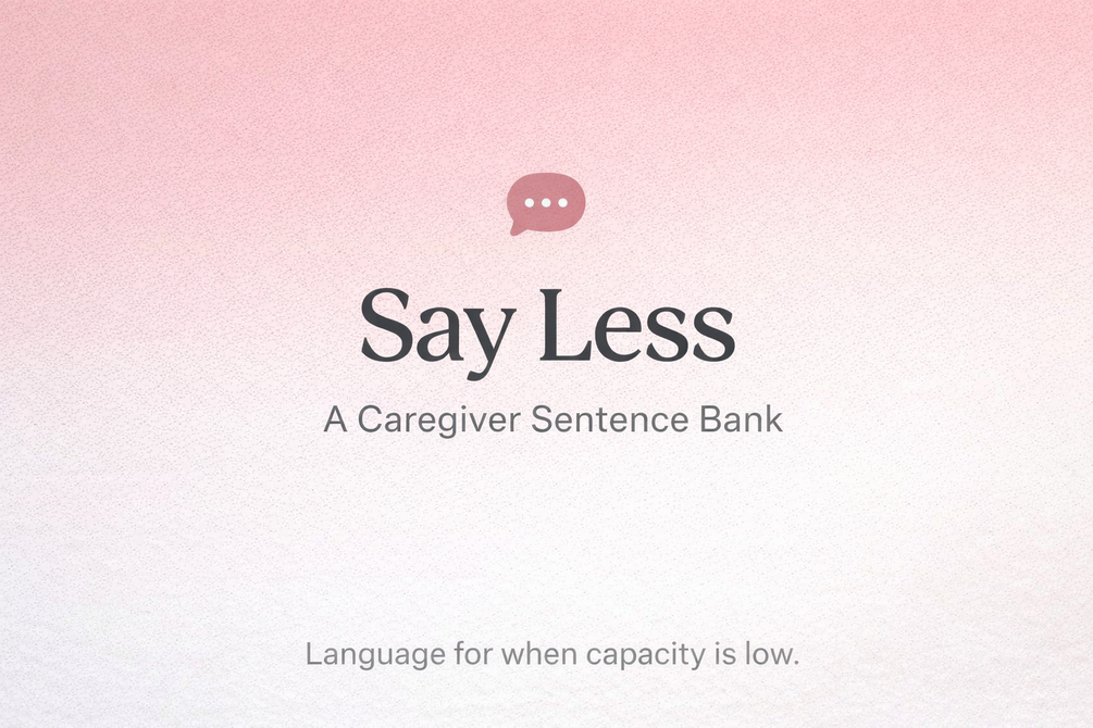 Say Less is a reusable sentence bank designed to help caregivers communicate clearly and respectfully without over-explaining, justifying, or escalating conflict.